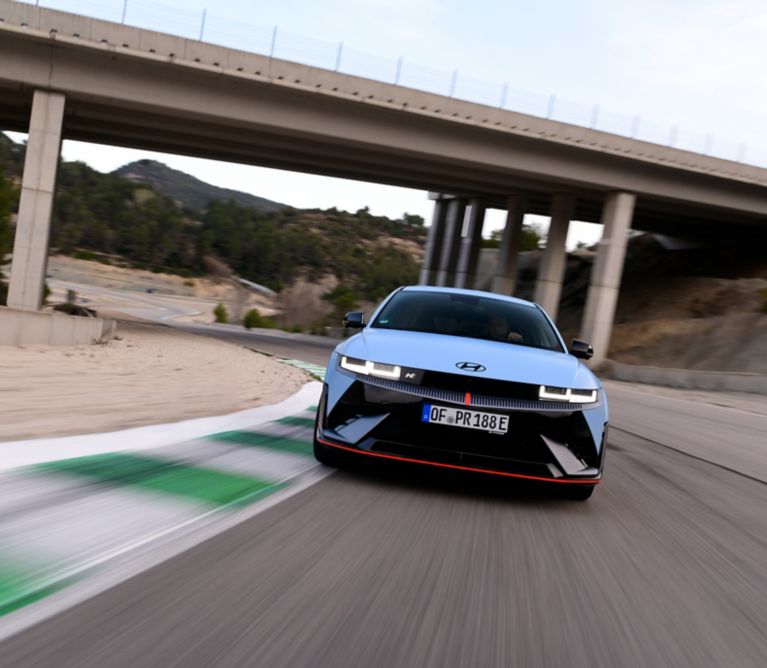 Mehrere exklusive Funktionen unterstützen die Leistung auf der Rennstrecke. N Grin Boost maximiert die Beschleunigung für die Dauer von 10 Sekunden und N Launch Control bietet drei verschiedene Traktionsstufen für den schnellstmöglichen Start, so dass der Fahrer sein Fahrzeug wie einen professionellen Rennwagen starten kann. Track SoC (State-of-Charge) berechnet automatisch den Batterieverbrauch pro Runde.