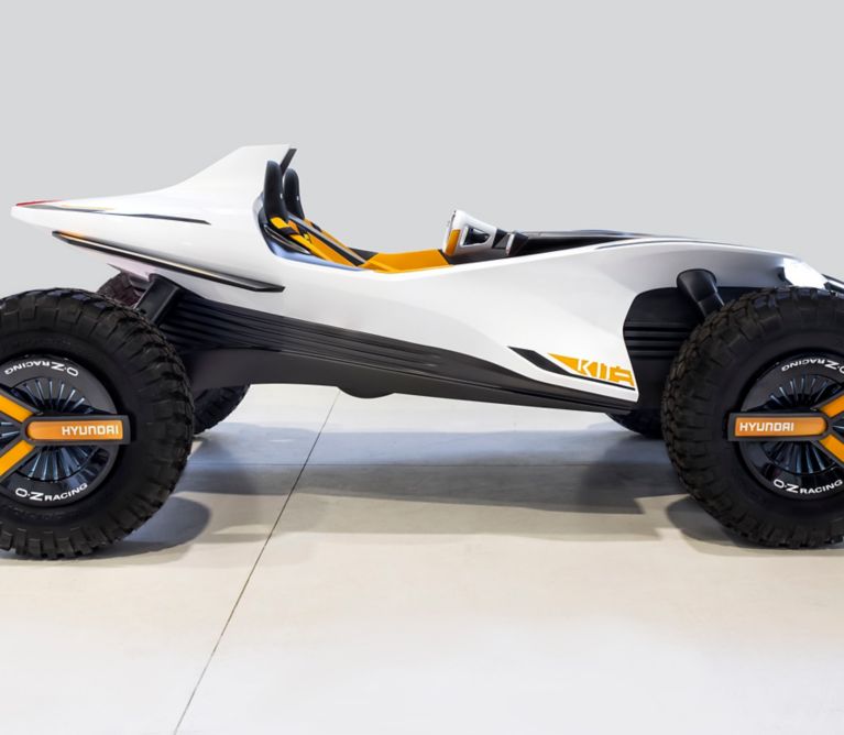 Tragendes Element des Hyundai Kite ist das Monocoque-Chassis. Der Buggy hat eine Länge von 3.745 Millimetern und eine Höhe von 1.455 Millimetern. Sowohl auf der Straße als auch auf dem Wasser fährt der umweltfreundliche Hyundai Kite elektrisch angetrieben. Beim Betrieb des Buggys auf der Straße und im Gelände sorgen vier Elektromotoren in den Rädern vor Vortrieb. Auf dem Wasser hingegen sorgt eine elektrische Strahlturbine für große Fahrfreude. Der Fahrer des Hyundai Kite kann viele Funktionen des Fahrzeugs intuitiv über das Smartphone steuern.