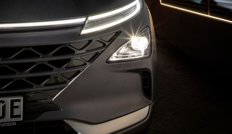 Kein anderer Hersteller treibt die Brennstoffzellentechnologie so weit und so konsequent voran wie Hyundai. Seit 1998 forscht das Unternehmen an der Technik, Millionen von Testkilometern haben die Entwicklungs- und Testfahrzeuge der Marke rund um den Globus bereits erfolgreich absolviert. Nun baut Hyundai seine Führungsrolle in dieser Technologie weiter aus – und setzt zugleich Maßstäbe bei Design, aktiver Sicherheit und Komfort. Denn so außergewöhnlich das Antriebskonzept ist, so überzeugend zeigt sich der NEXO bei der Nutzung im automobilen Alltag. Klar, wohlproportioniert und elegant fällt die markante Linienführung aus, die den NEXO zu einem stilistisch in jeder Hinsicht überzeugenden SUV-Modell macht. Zahlreich sind die Assistenzsysteme unter dem Begriff Hyundai SmartSense, die den Fahrer entlasten und durch Überwachung des Verkehrs einen wichtigen Beitrag zur Unfallverhütung liefern. Umfangreich ist die serienmäßige Ausstattung, die kaum Wünsche offen lässt. Das technologische Flaggschiff der Marke repräsentiert damit nicht nur das Know-how von Hyundai beim Brennstoffzellenantrieb, sondern ist auch in anderen Bereichen Aushängeschild für die Kompetenz der Designer und Ingenieure. Hyundai bezeichnet den NEXO daher auch als „Future Utility Vehicle“, das die Praktikabilität eines SUV mit fortschrittlicher Elektrifizierung, umfassenden Assistenzsystemen und markanten Designmerkmalen kombiniert.
