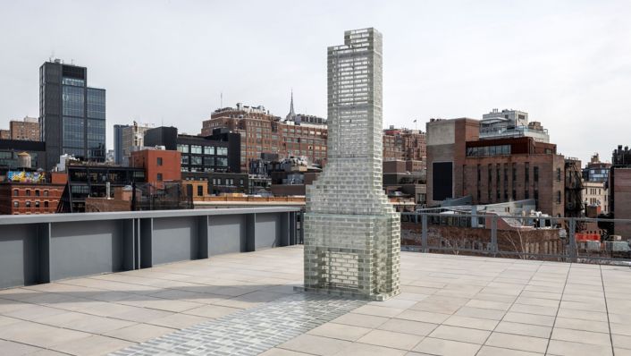 Ancla la presentación Monument (Altadena) (2026), una instalación de chimenea y pasarela que se configura a la vez como reconstrucción y monumento conmemorativo. Después de que la casa y el estudio de Akashi ardieran en el incendio de Eaton en enero de 2025, la chimenea fue la única estructura que quedó en pie. Para la Comisión Hyundai Terrace, la artista ha trabajado con un albañil para reconstruir la chimenea pieza a pieza junto a una reconstrucción del camino de su casa, realizada en luminoso ladrillo de vidrio fundido. Instalada en la terraza, la obra transforma la galería exterior del Whitney en un lugar cargado de testimonios y una meditación sobre la supervivencia, la ruptura y la frágil permanencia de lo que permanece.