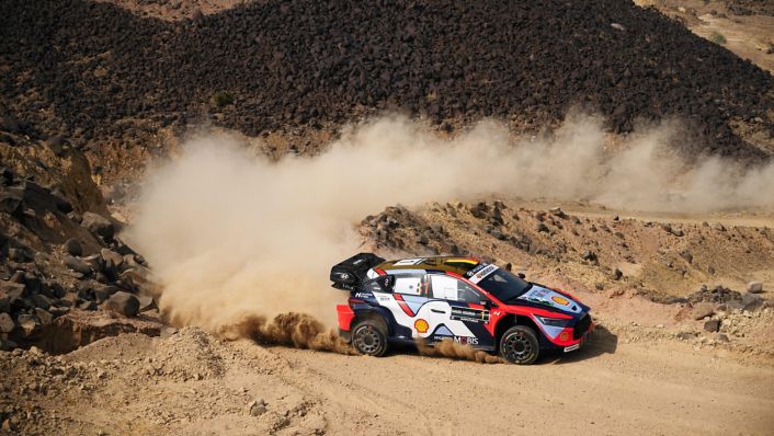 El Hyundai Shell Mobis World Rally Team tuvo un primer día positivo en la primera edición del Rally de Arabia Saudí, la última prueba de la temporada 2025 del Campeonato del Mundo de Rallies (WRC) FIA. Adrien Fourmaux y Alexandre Coria lideran la carrera y terminan el jueves en primera posición de la clasificación general.