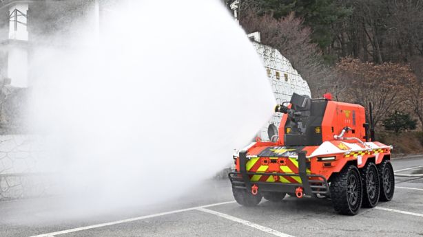 - Based on Hyundai Rotem’s HR-Sherpa multi-purpose unmanned vehicle, the robot is equipped with key features for remote fire suppression, including a water cannon, self-spraying system, vision-enhancing camera, and remote-control operation
