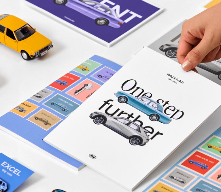 | Stratégie de marque & communication Design : Stratégie de marque | Héritage de Hyundai : 100 millions de véhicules produits | Une campagne célébrant le cap des 100 millions de véhicules produits par la marque et son esprit progressiste. |