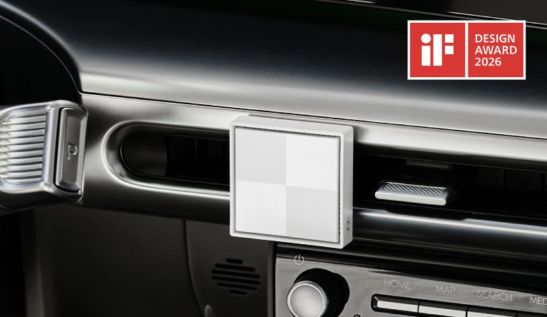 | Design produit : Automobile | Diffuseur à pixels | Un désodorisant pour voiture inspiré du motif à pixels emblématique de la ligne IONIQ, conçu pour offrir une grande facilité d’utilisation. |