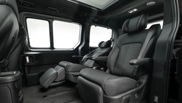 La vaste surface vitrée inonde l’habitacle de lumière naturelle, rehaussant ainsi son caractère aéré et accueillant. Le sentiment d’espace à bord de STARIA ne tient pas uniquement à ses dimensions, mais se traduit également par une grande liberté de mouvement, une vue parfaitement dégagée aux différentes places et une configuration flexible des sièges. Qu’il soit utilisé pour voyager en famille, transporter des passagers dans un cadre professionnel ou pratiquer des activités de loisirs, STARIA Electric offre un environnement intérieur à la fois ouvert, calme et extrêmement modulable.