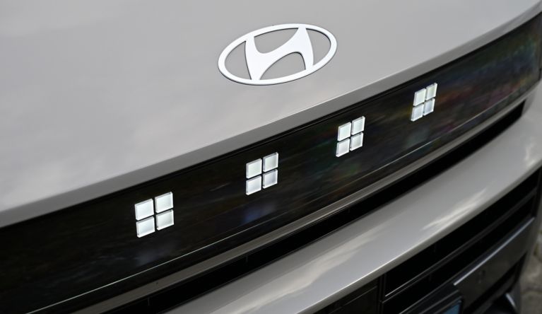Le superfici della carrozzeria assumono un ruolo centrale: la scocca è modellata attraverso volumi scolpiti e tensioni visive che trasmettono immediate sensazioni di pulizia formale, innovazione e robustezza strutturale. La firma luminosa HTWO, sviluppata specificamente per i modelli fuel cell, non solo conferisce alla vettura una riconoscibilità immediata, ma diventa parte integrante della sua identità, segnando con decisione il volto di una tecnologia diversa e avanzata.